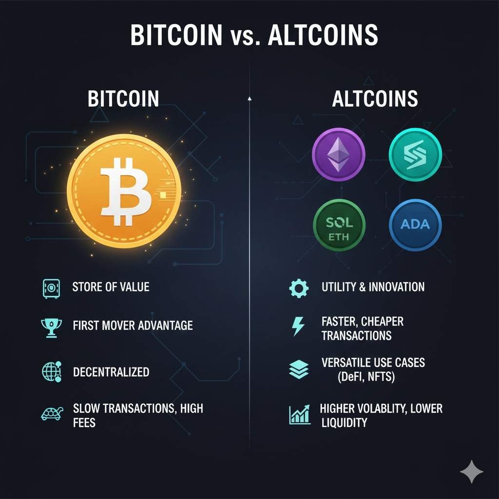 Understanding the difference between Bitcoin and altcoins explained allows smarter, safer investment decisions.