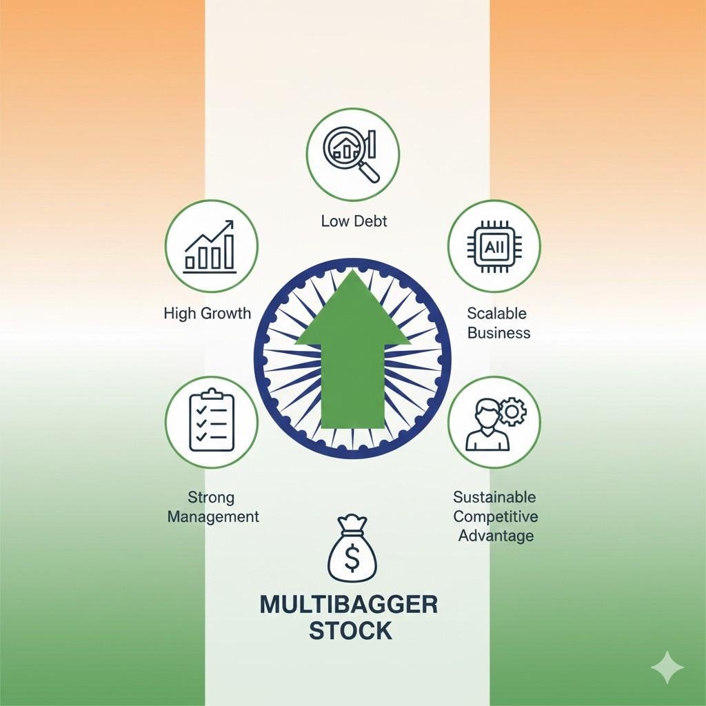 A multibagger stock is one that gives returns significantly above the original investment often 3X, 5X or more over years.